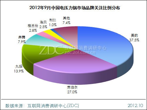 2012年9月中国电压力锅市场品牌关注比例分布