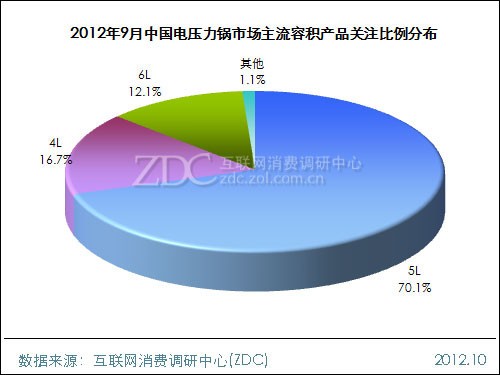 2012年9月中国电压力锅市场主流容积产品关注比例分布