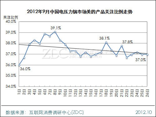 2012年9月中国电压力锅市场美的产品关注比例走势