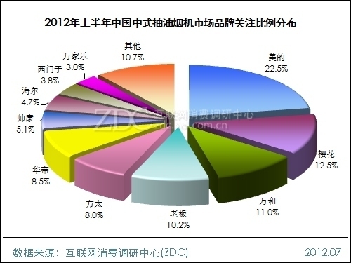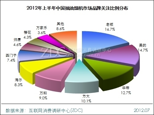 (图) 2012年上半年中国抽油烟机市场品牌关注比例分布