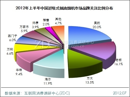 (图) 2012年上半年中国近吸式抽油烟机市场品牌关注比例分布