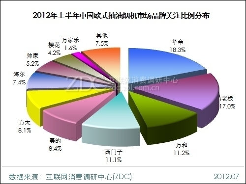 (图) 2012年上半年中国欧式抽油烟机市场品牌关注比例分布