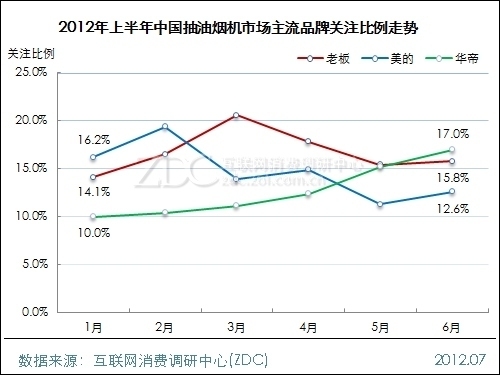 (图) 2012年上半年中国抽油烟机市场主流品牌关注比例走势