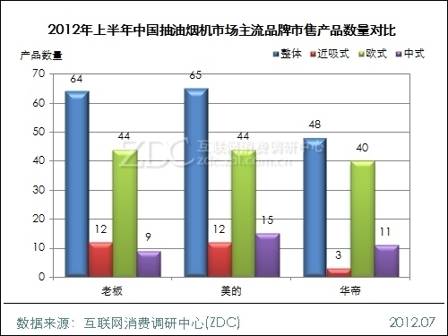 (图) 2012年上半年中国抽油烟机市场主流品牌市售产品数量对比