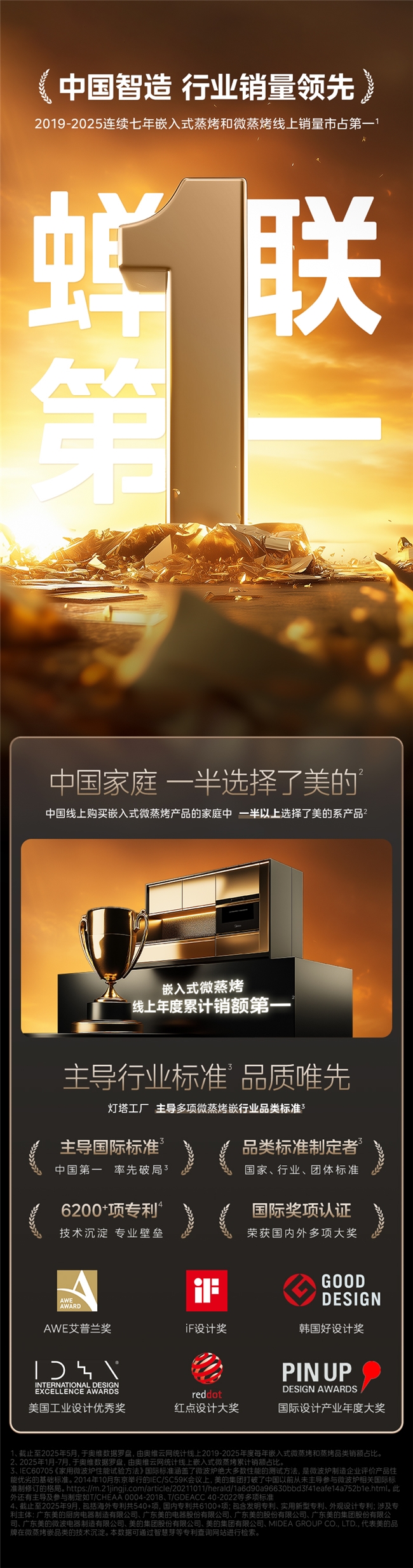 美的连续七年保持嵌入式蒸烤和微蒸烤线上销冠地位,并荣获天猫厨房电器最受消费者喜爱品牌称号。这一"销量+品牌"的双冠成绩,充分证明了美的在消费者心中的地位。